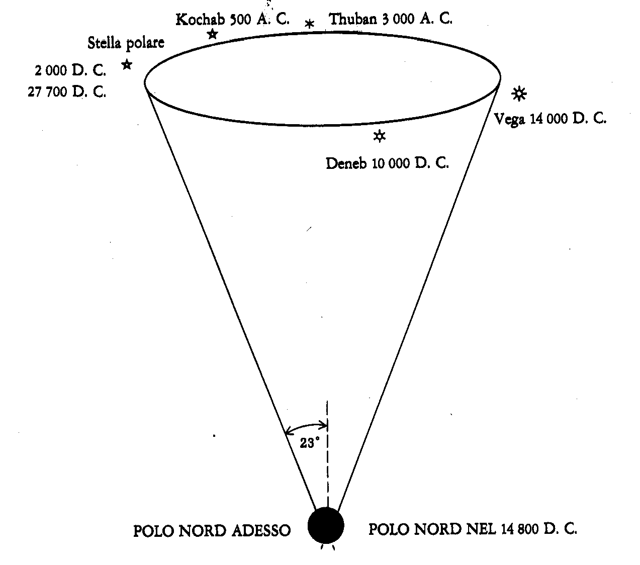Ad ogni modo è vero che in un tempo inferiore ai 26000 anni, in prima approssimazione, si compie un intero giro dell’asse terrestre, che si manifesta in una rotazione del polo nord celeste.